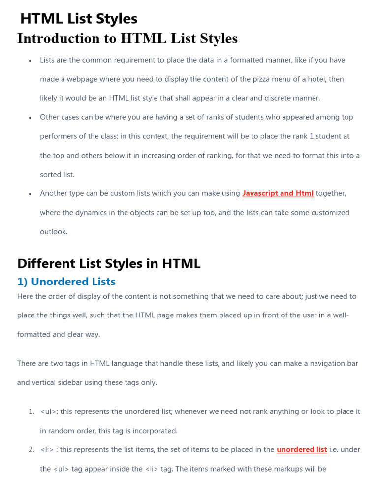 Introduction to HTML List Styles