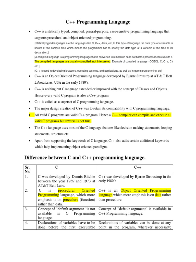 1. C was developed by Dennis Ritchie C++ was developed by Bjarne Stroustrup in the
