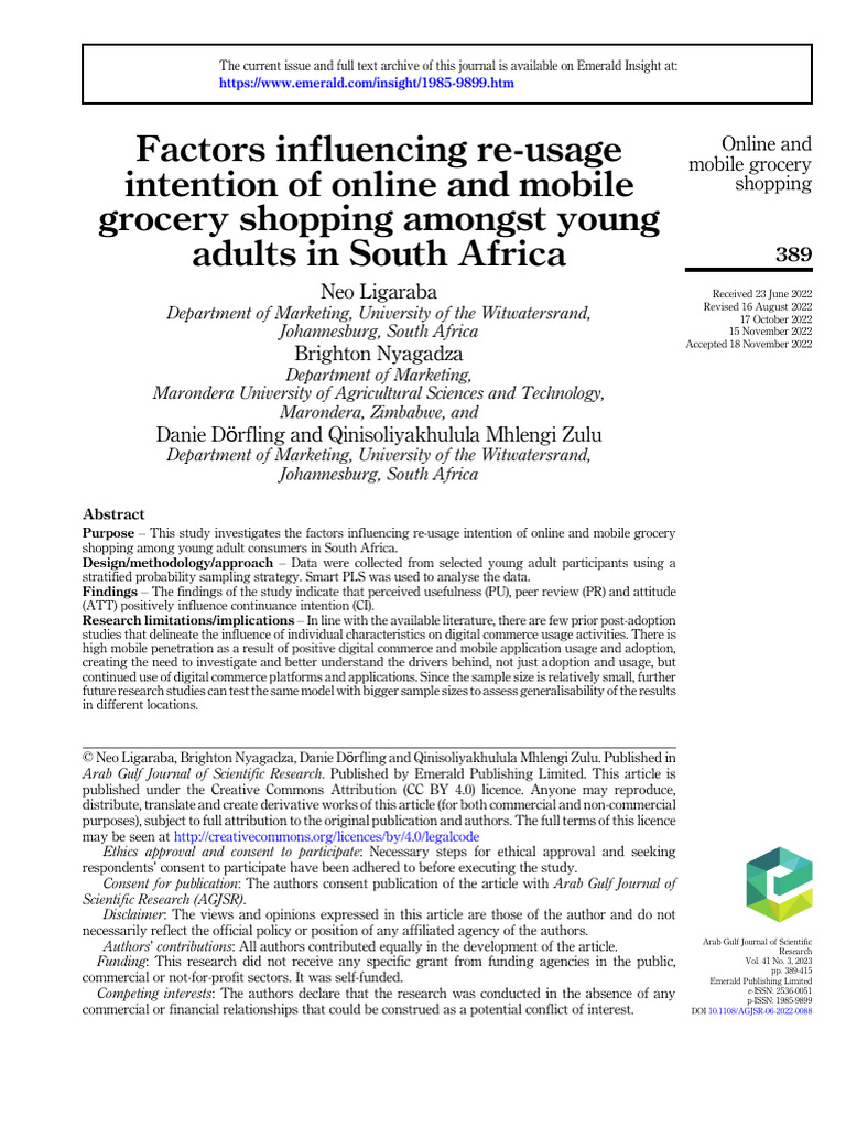 Keywords Digital commerce, e-commerce, Online mobile grocery shopping, Brand attitude,