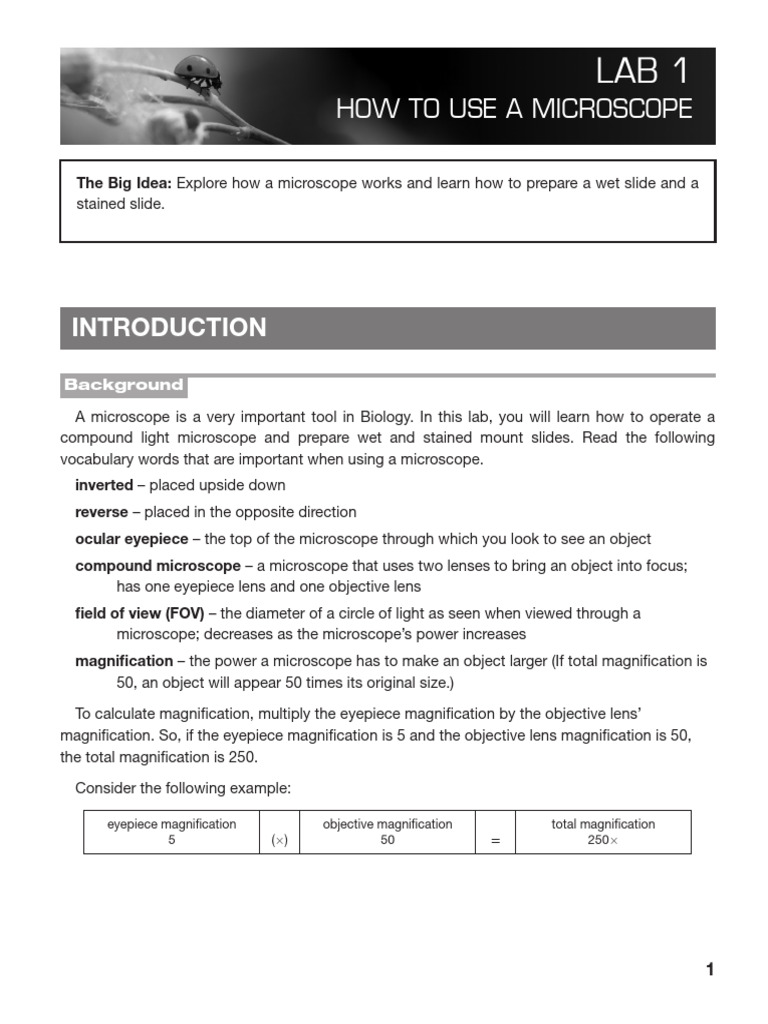The Big Idea: Explore how a microscope works and learn how to prepare a wet slide and a