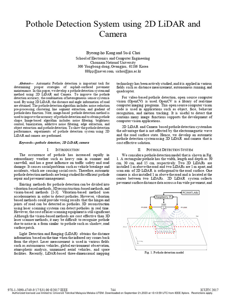 [2] J.-J. Kim and S.-I. Choi, “Implementation of Pothole Detection System