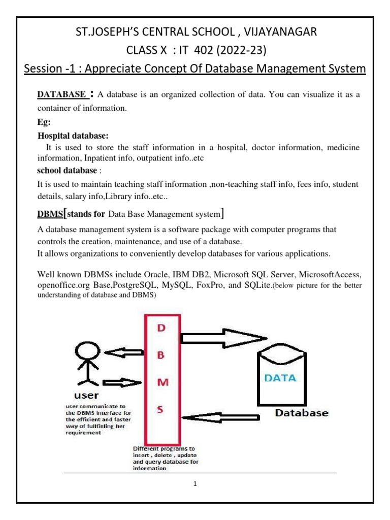 DATABASE : A database is an organized collection of data. You can visualize it as a