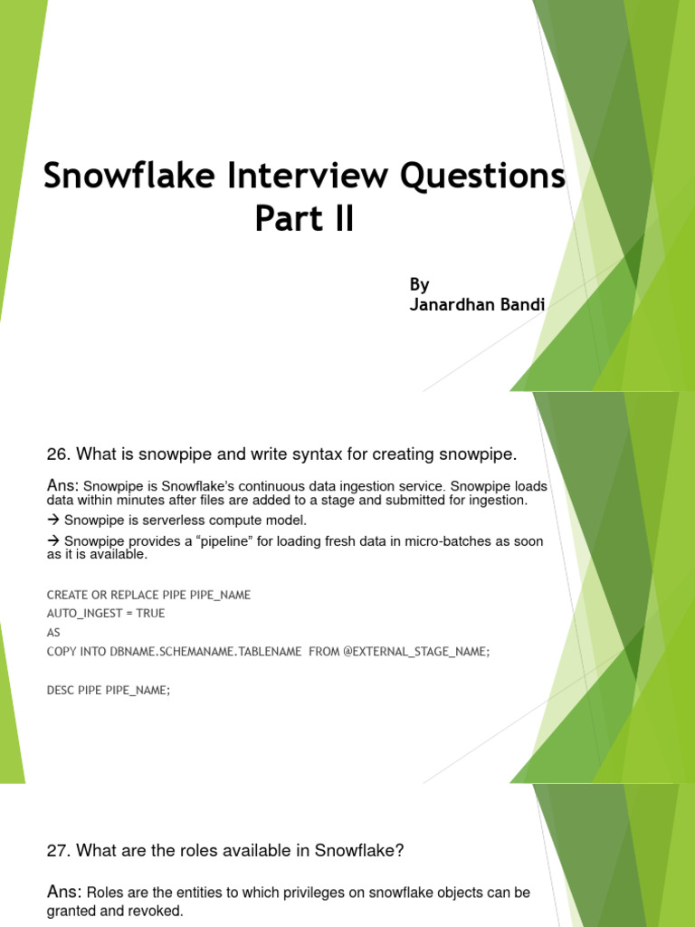 Ans: Snowpipe is Snowflake’s continuous data ingestion service. Snowpipe loads