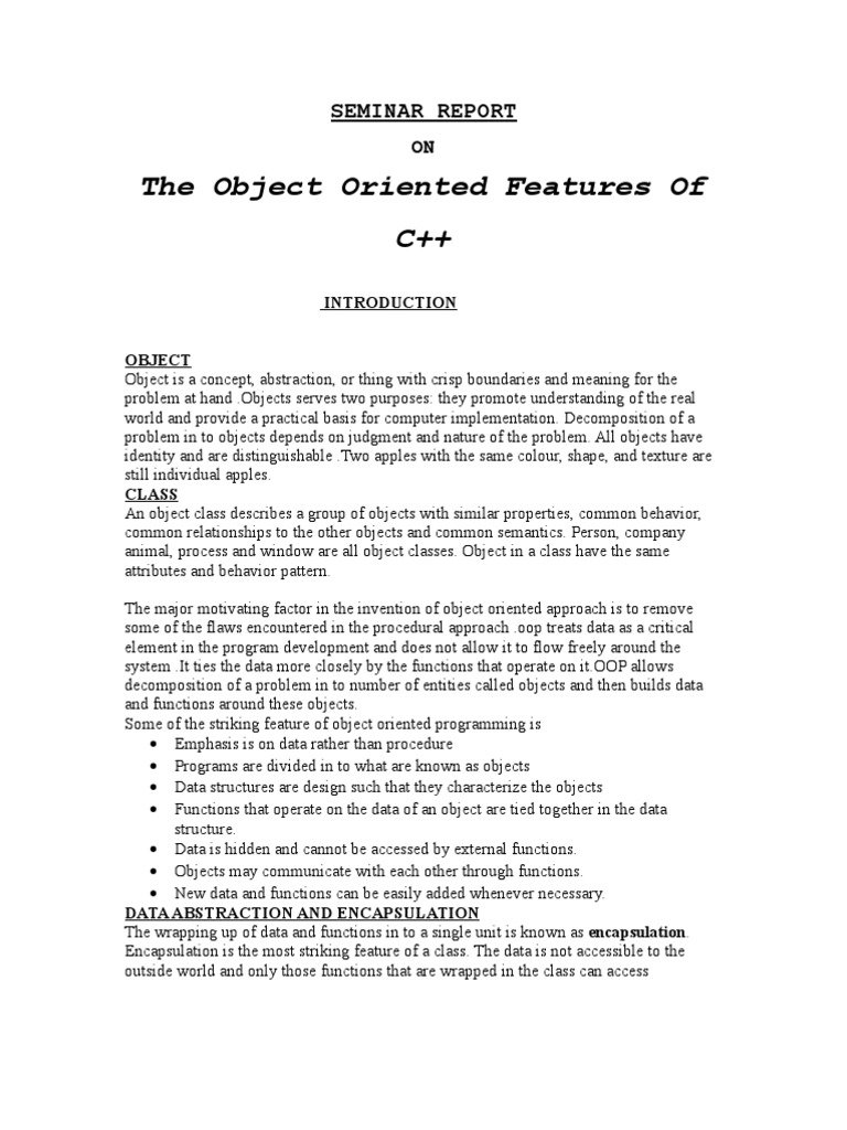 Encapsulation is the most striking feature of a class. The data is not accessible to the