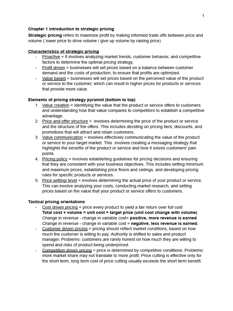 Chapter 1 introduction to strategic pricing