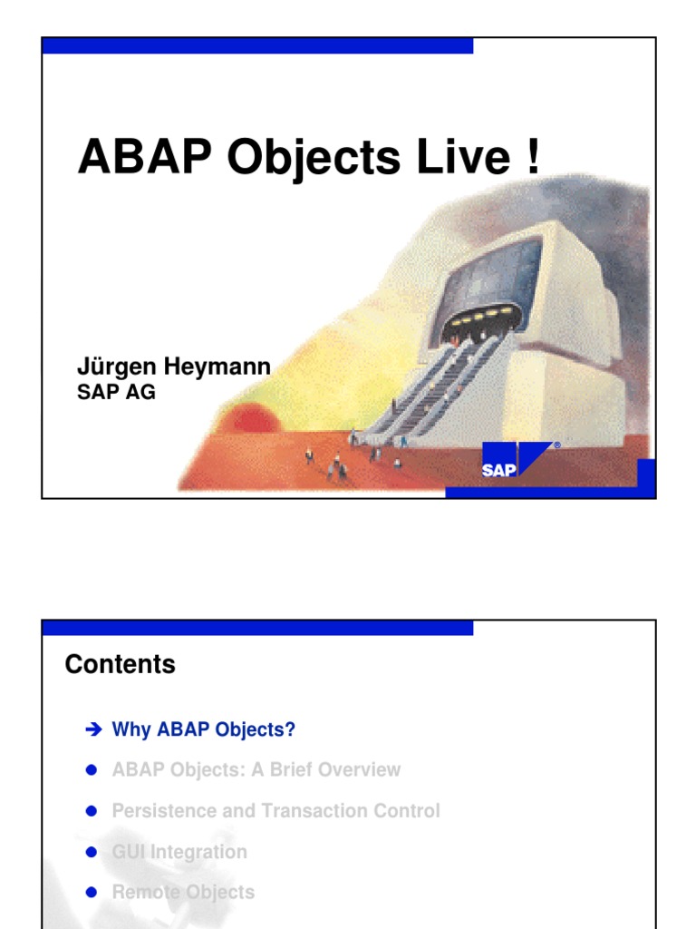 z Why ABAP Objects? z ABAP Objects: A Brief Overview Persistence and Transaction Control z GUI Integration z Remote Objects