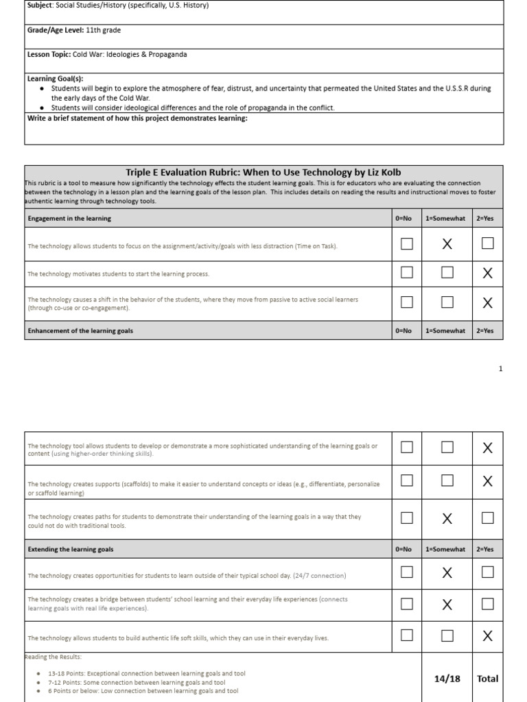 ● 7-12 Points: Some connection between learning goals and tool 14/18 Total