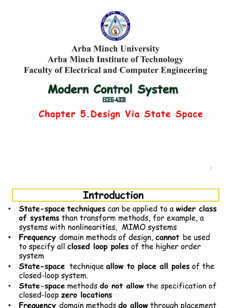 The char. Equationis 5" +a, s"" +....+a,8 ta, =0Pole Placement for Plants in Phase-Variable Form
