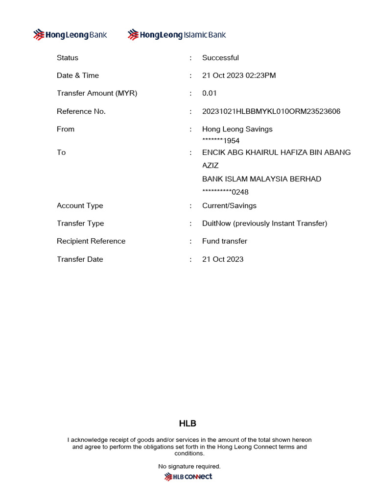 Transfer Amount (MYR) : 0.01