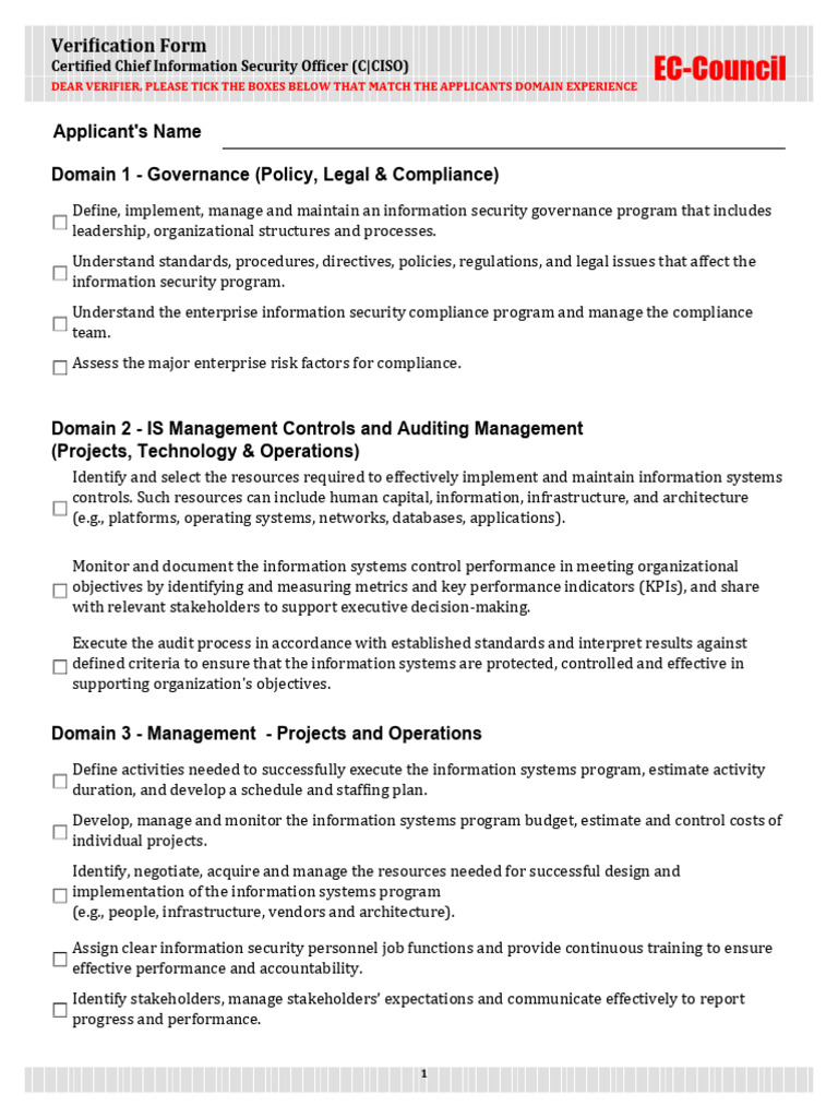 Would you recommend the candidate for EC-Council's Certified Chief Information Security Officer