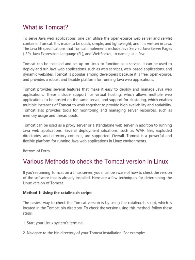 If you're running Tomcat on a Linux server, you must be aware of how to check the version