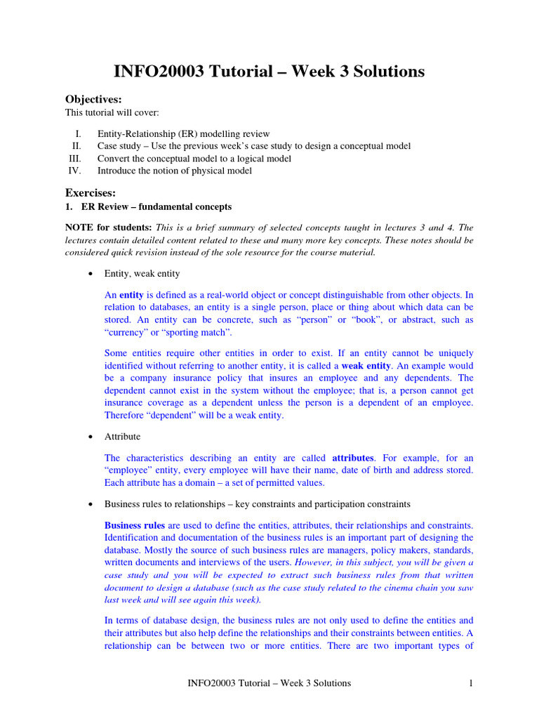 INFO20003 Tutorial – Week 3 Solutions