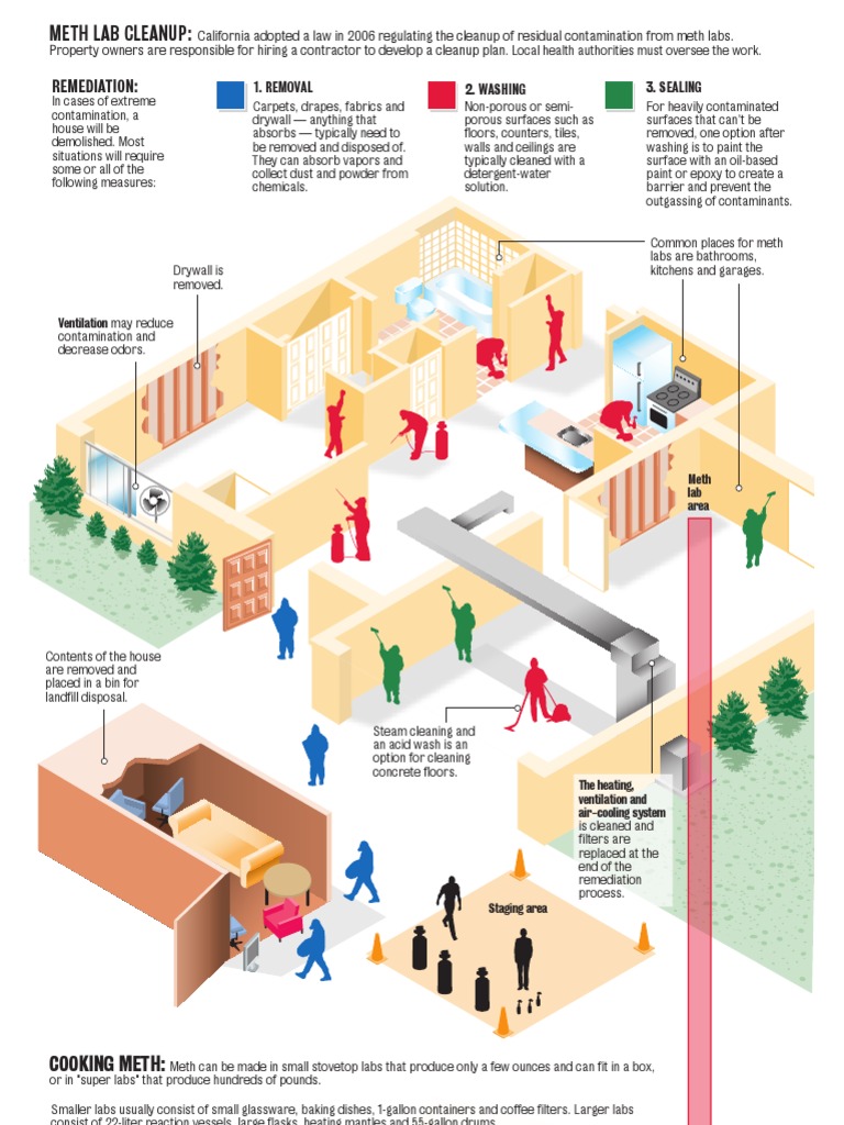 METH LAB CLEANUP: California adopted a law in 2006 regulating the cleanup of residual contamination from meth labs.