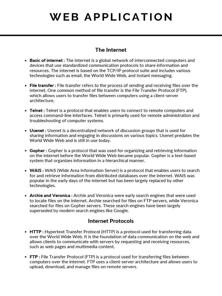 including web servers, web browsers, and web pages. Web pages are written in HTML