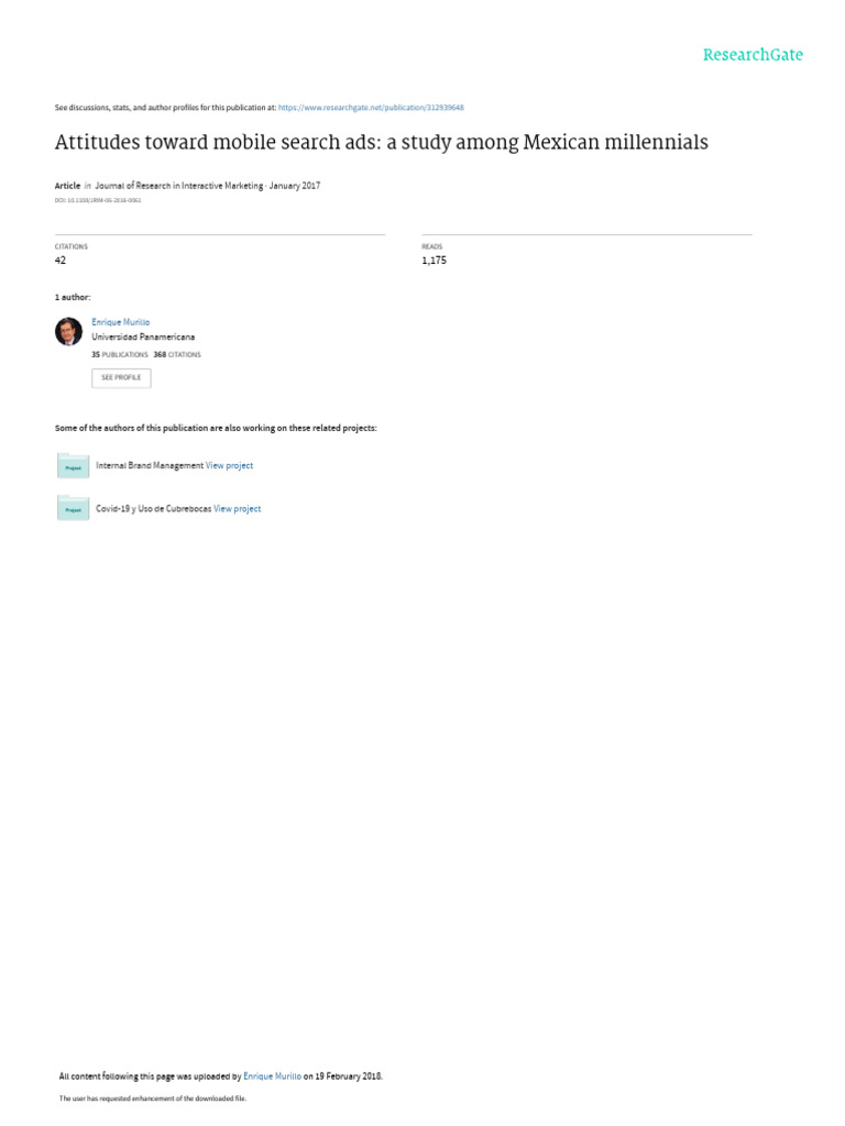 Murillo, Enrique. "Attitudes toward mobile search ads: a study among Mexican millennials."