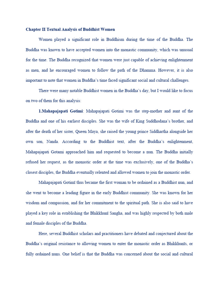 Buddhist texts and can study the role of a woman in the Buddha time from a historical and