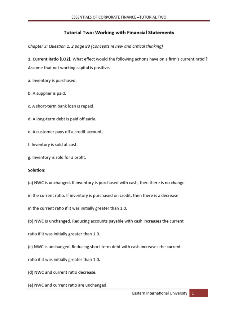 ESSENTIALS OF CORPORATE FINANCE –TUTORIAL TWO