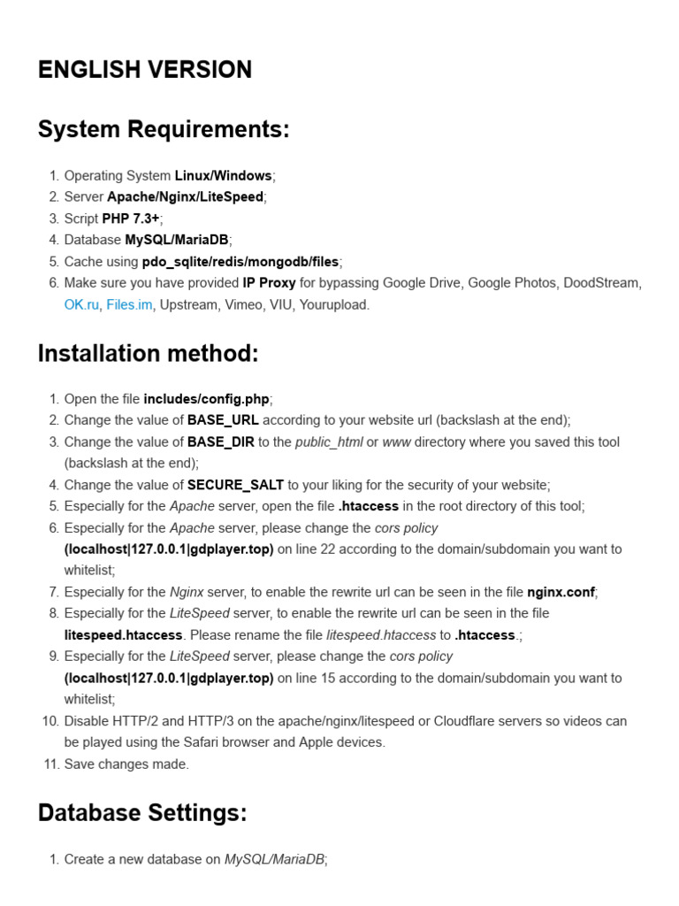 9. Khusus untuk server LiteSpeed, silahkan ubah cors policy (localhost|127.0.0.1|gdplayer.top)