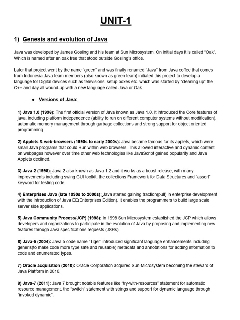 1) Java 1.0 (1996): The first official version of Java known as Java 1.0. It introduced the Core features of