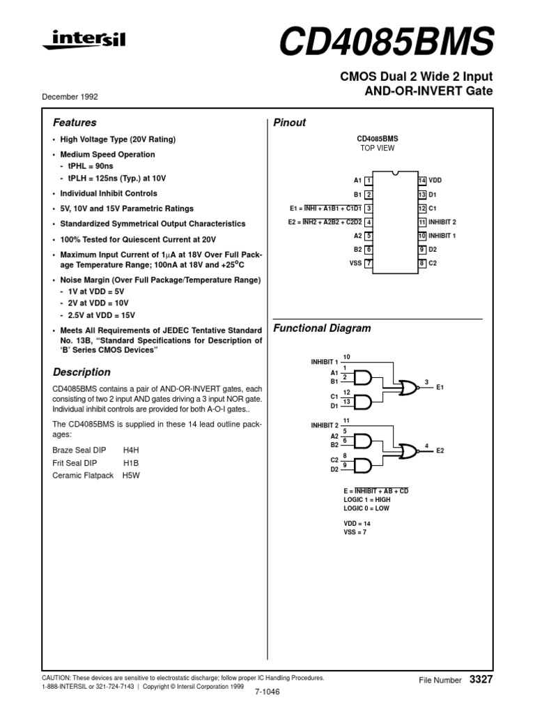 CAUTION: These devices are sensitive to electrostatic discharge; follow proper IC Handling Procedures. File Number 3327
