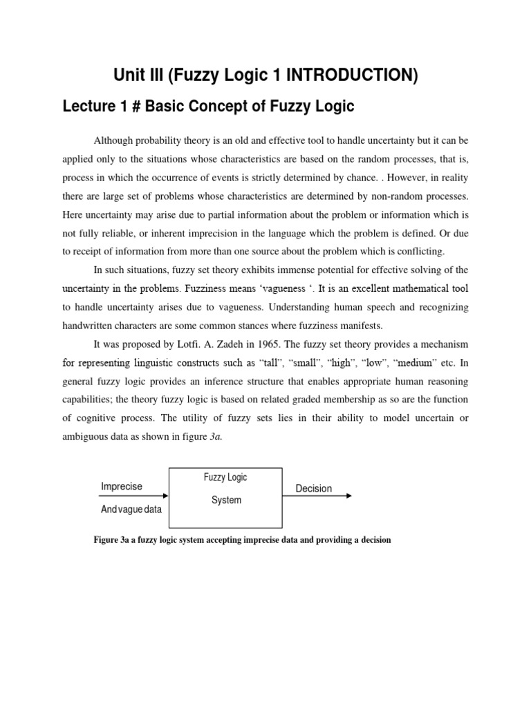 Unit III (Fuzzy Logic 1 INTRODUCTION)