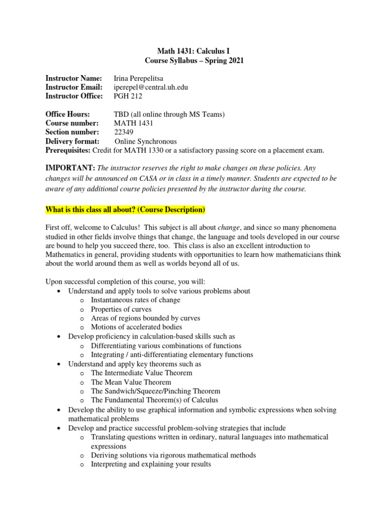 ethical integrity expected at the University of Houston or by a course instructor to fulfill any and