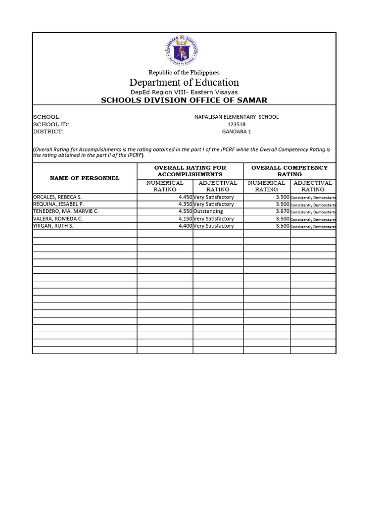 (Overall Rating for Accomplishments is the rating obtained in the part I of the IPCRF while the Overall Competency Rating is