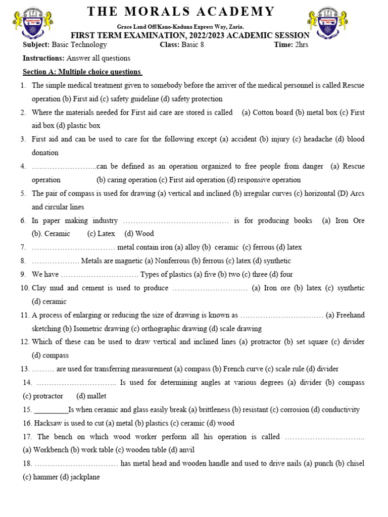 Subject: Basic Technology Class: Basic 8 Time: 2hrs