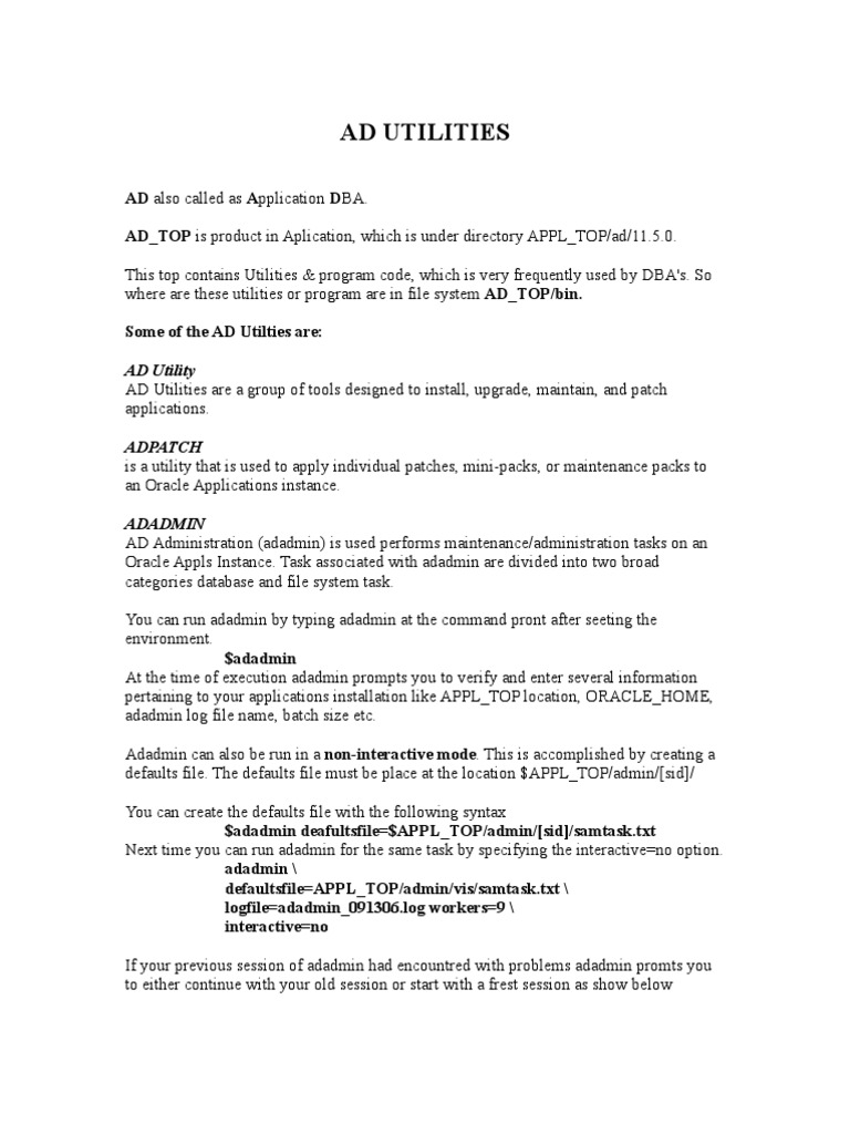 $adadmin deafultsfile=$APPL_TOP/admin/[sid]/samtask.txt