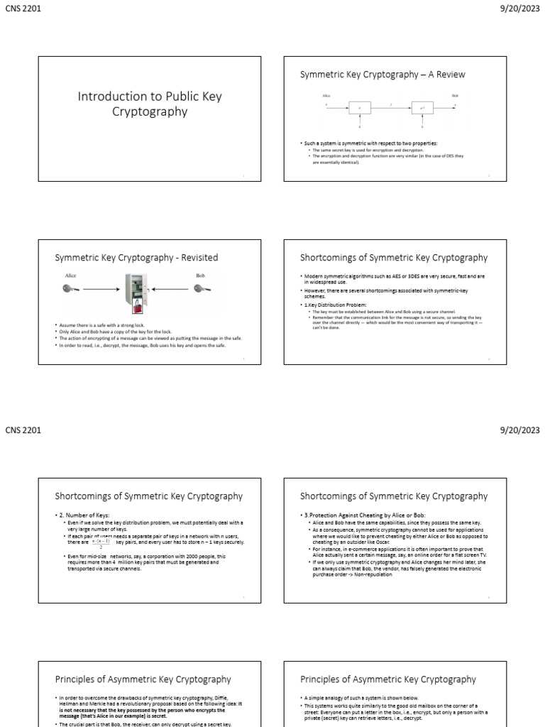 requires more than 4 million key pairs that must be generated and • If we only use symmetric cryptography and Alice changes her mind later, she