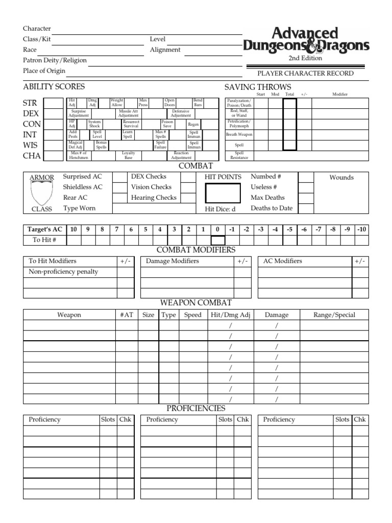 Originally created for VULGAR of Vanderbilt University AD&D Character Sheet Rev 4.6 7/98 by Patrick M. Murphy