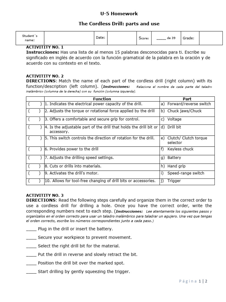 Date: Score: _____ de 39 Grade: