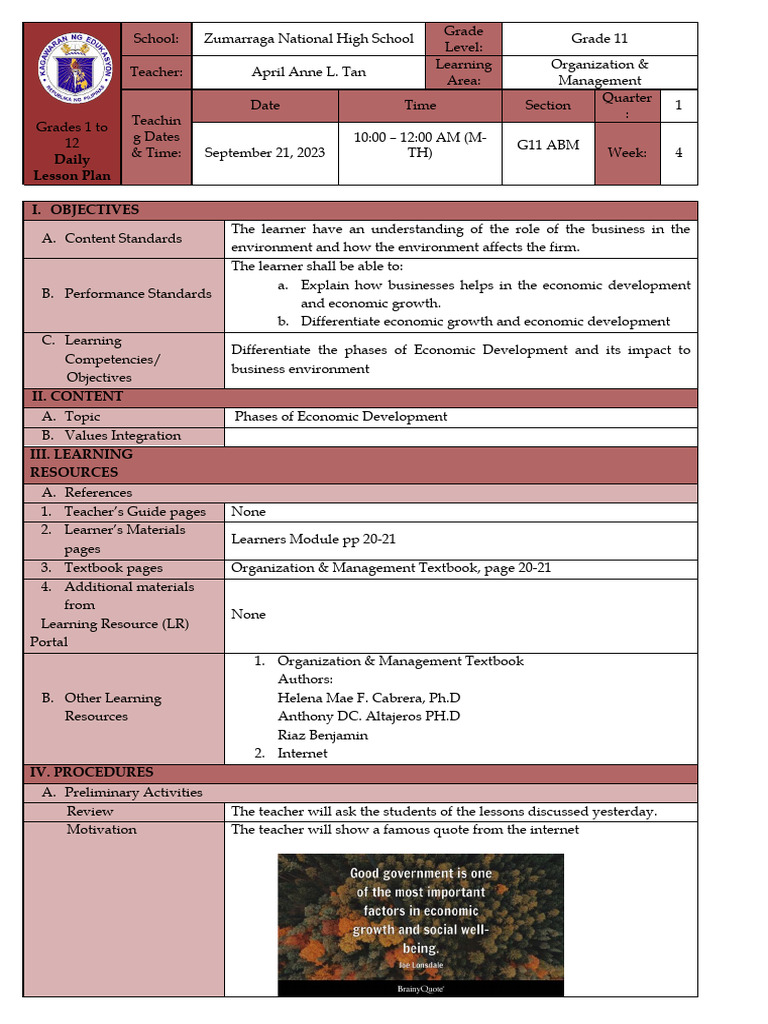 Review The teacher will ask the students of the lessons discussed yesterday.