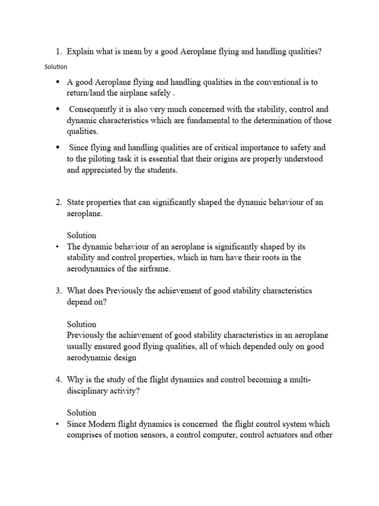 1. Explain what is mean by a good Aeroplane flying and handling qualities?