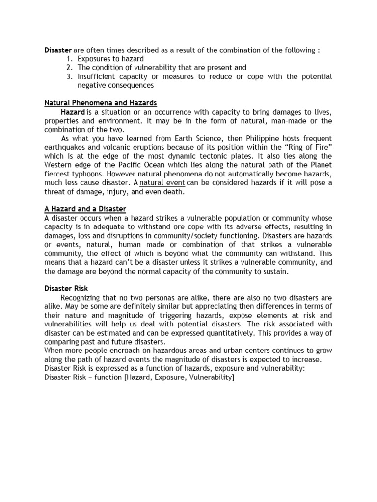 In understanding Disaster Risk, it is important to review and understand the following