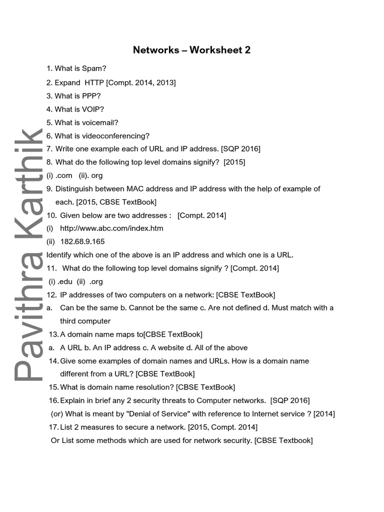 Networks – Worksheet 2