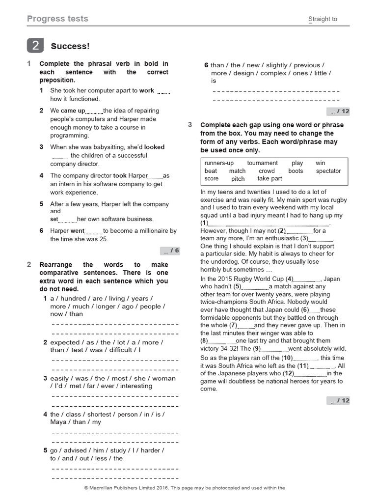 Progress tests Straight to
