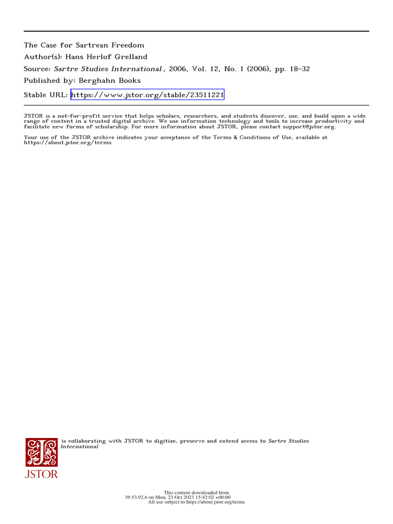 Source: Sartre Studies International , 2006, Vol. 12, No. 1 (2006), pp. 18-32
