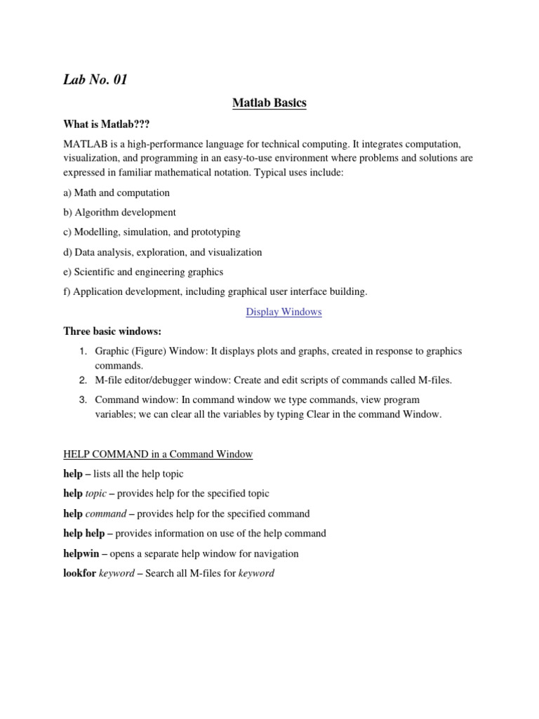 1. Graphic (Figure) Window: It displays plots and graphs, created in response to graphics