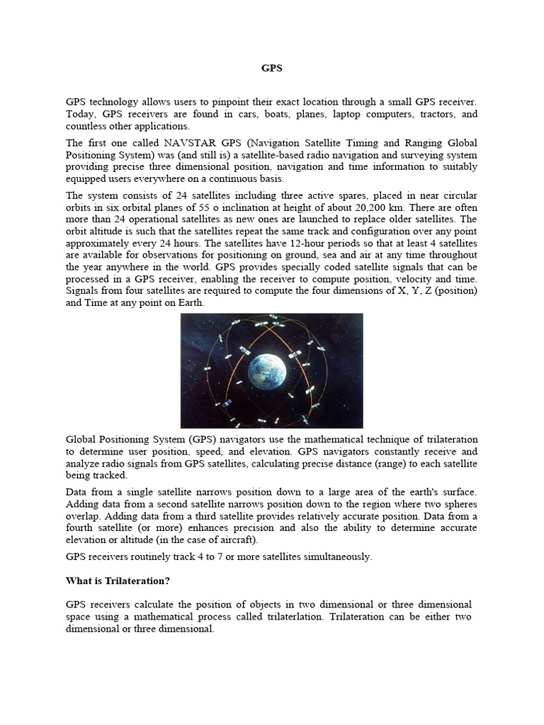 The first one called NAVSTAR GPS (Navigation Satellite Timing and Ranging Global