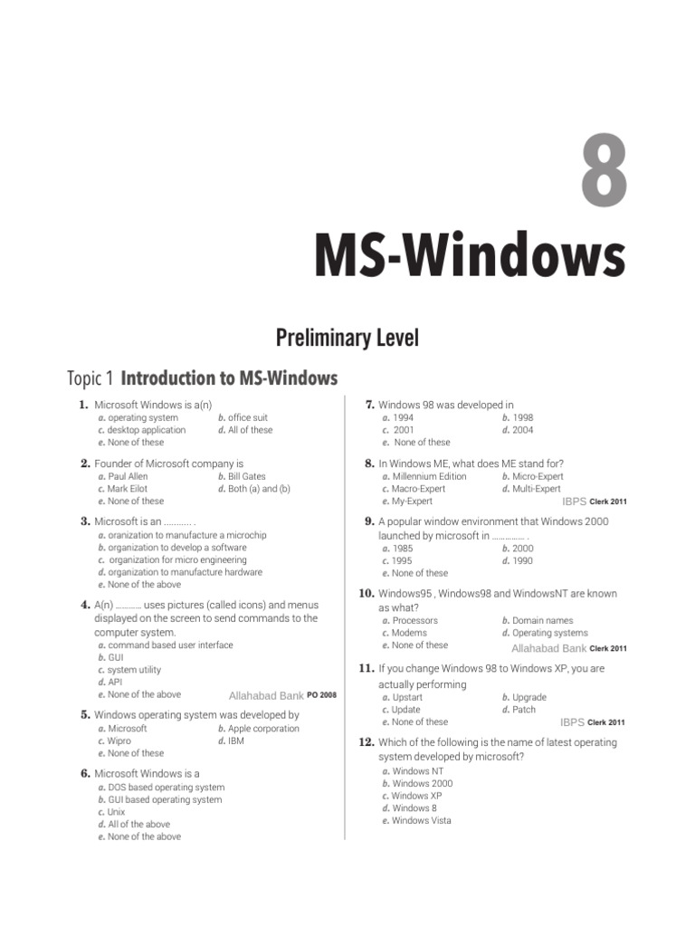 b. Windows 7 e. None of these Allahabad Bank Clerk 2008