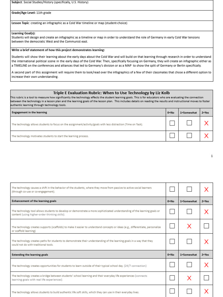 Modified from Liz Kolb’s original TripleE Framework Lesson Planning Template