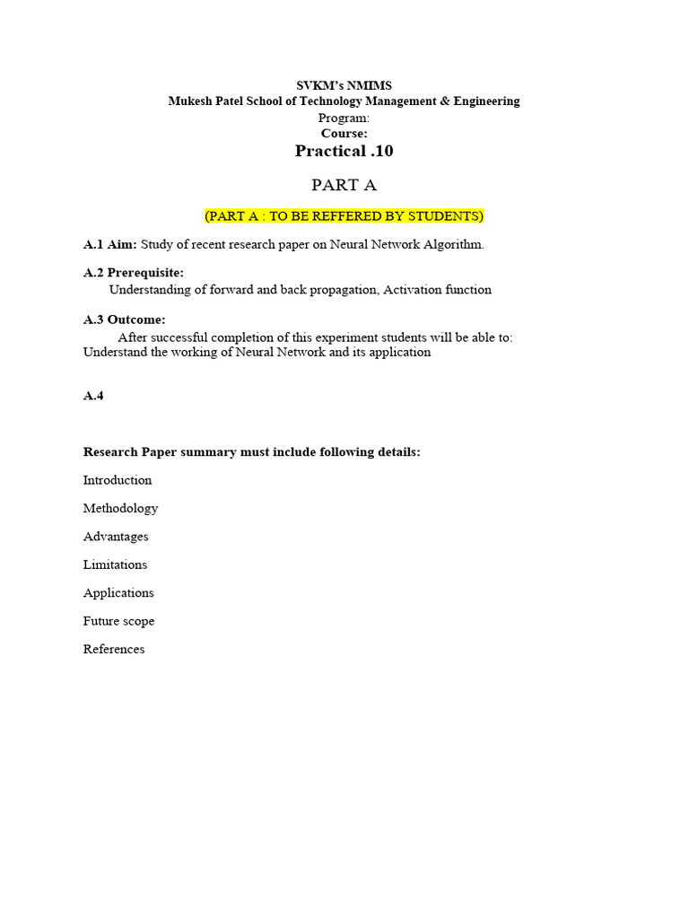 A.1 Aim: Study of recent research paper on Neural Network Algorithm.