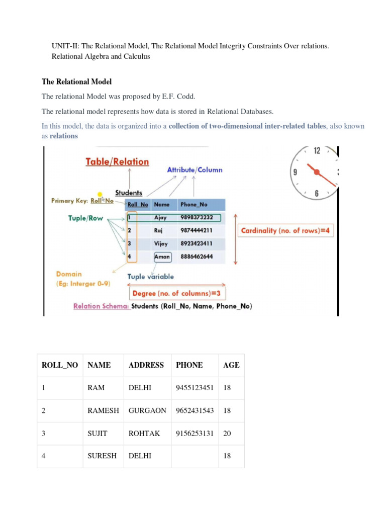 UNIT-II: The Relational Model, The Relational Model Integrity Constraints Over relations.