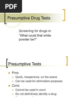 Presumptive test- first step of testing for further analysis. Typically, initially performed by in site law