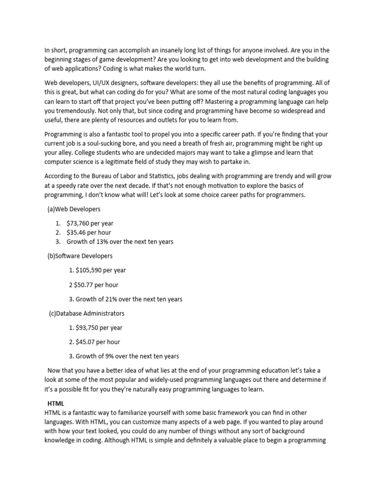 knowledge in coding. Although HTML is simple and definitely a valuable place to begin a programming