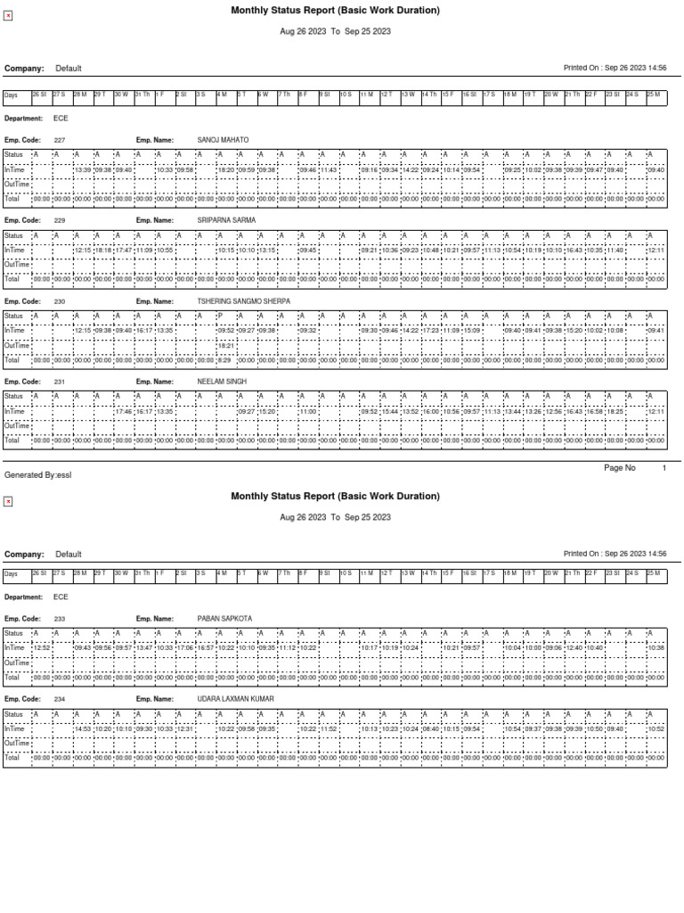 Emp. Code: 233 Emp. Name: PABAN SAPKOTA