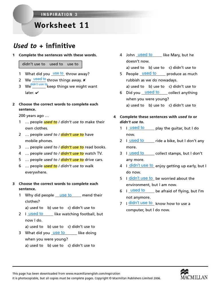 6 … people used to / didn’t use to walk 4 didn't use to enjoy getting up early, but I