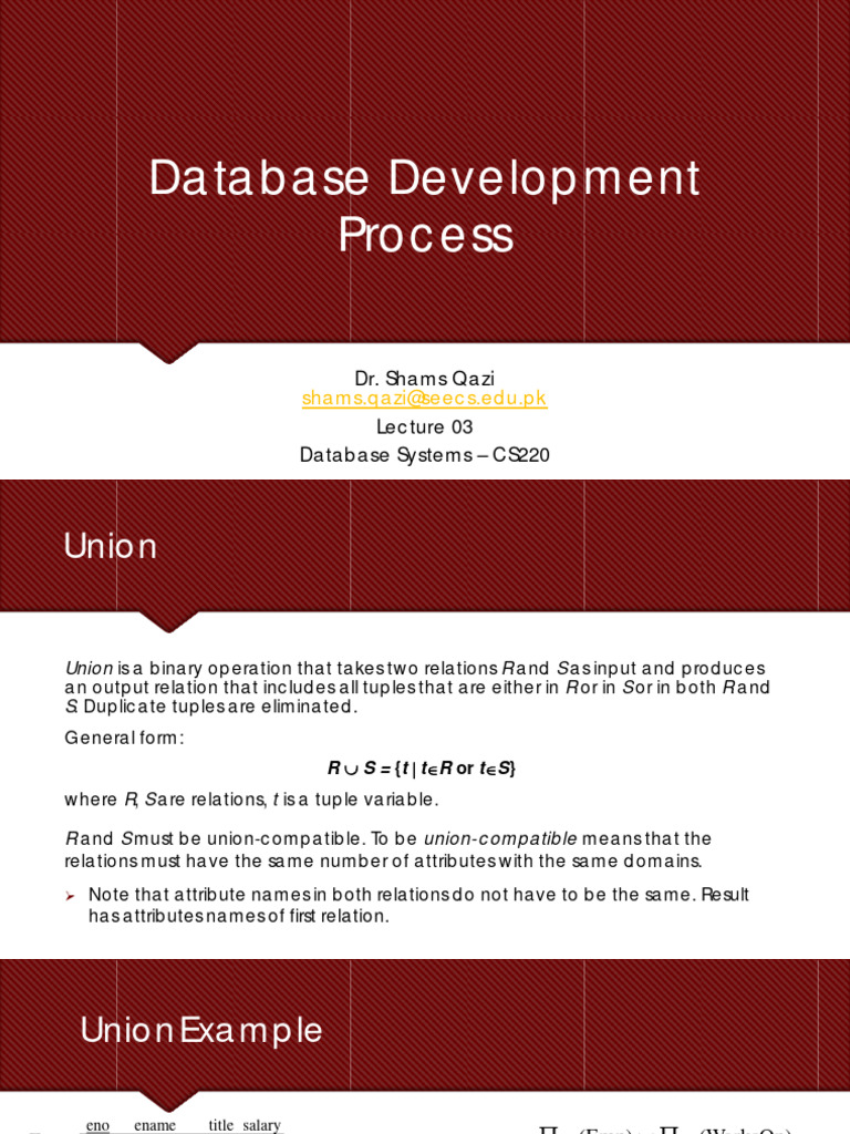 eno ename title salary Πeno(Emp) ∩ Πeno(WorksOn)