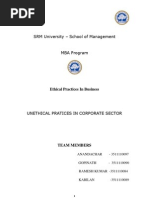 Unethical Business Practices The financial sector is abuzz with acts of violation of norms to amass wealth in an unethical manner. Following are some of the activities that come under the ambit of unethical practice.